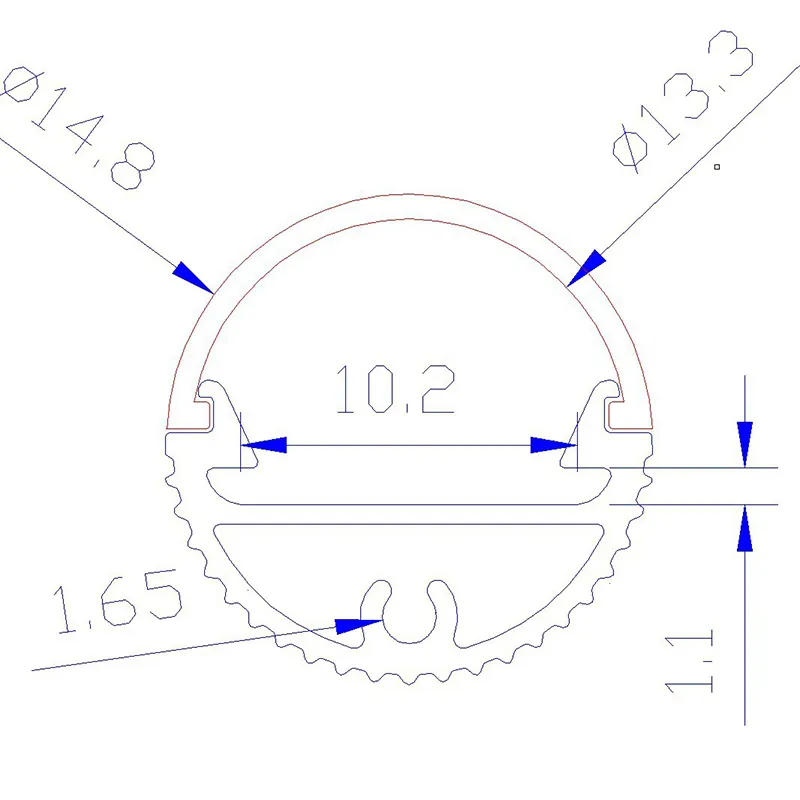 Корпусът на тръбата JE-22 LED T5 е стандартен продукт от нашата компания. Той е не само подходящ за проектиране и производство на стандартни LED T5 тръби, но също така често се използва в проекти за подмяна на LED светофари през последните години. Неговият алуминиев радиатор е изработен от висококачествен, удебелен алуминий 6063-T5, осигуряващ отлично разсейване на топлината. Специално за европейското пътно осветление, PC дифузьорът е направен от сертифицирани по EN 45545-2 материали, отговарящи перфектно на изискванията на проекта. PC дифузьорът се предлага както в стандартен прозрачен, така и в млечнобял цвят. Ако имате някакви специфични нужди от този корпус за LED светлини, моля не се колебайте да се свържете с нас.
