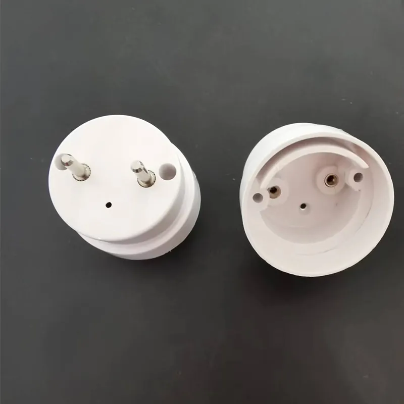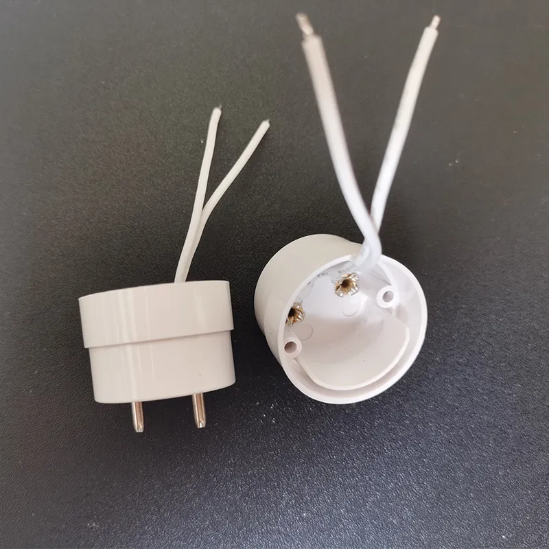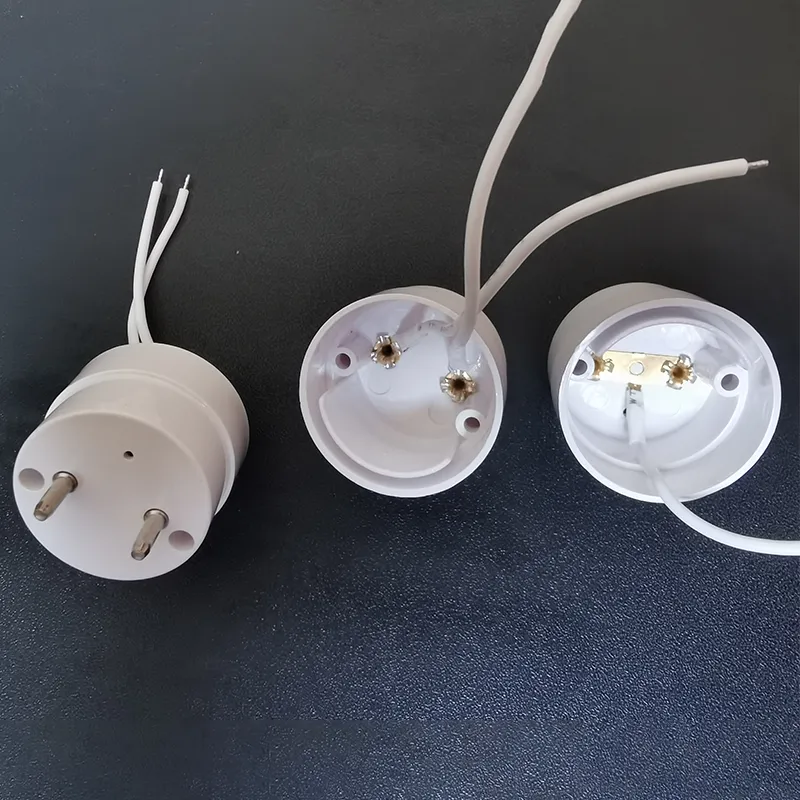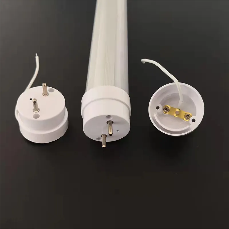 Това е конвенционална крайна капачка T8 G13 на нашата компания. Крайната капачка G13 се отнася до крайната капачка с две пина с централно разстояние 13 мм в двата края на тръбата. Основната цел на използването на G13 крайни капачки за LED T8 тръби е да бъде физически съвместима със съществуващите държачи за лампи (лампи за тела), предназначени за традиционни флуоресцентни лампи T8. Потребителите могат директно да вмъкнат LED тръби в държачите на лампата G13 на стари държачи за флуоресцентни лампи. Методът на захранване на LED T8 тръбите е различен от този на традиционните флуоресцентни лампи: традиционните флуоресцентни тръби изискват стартиране на високо напрежение (стартер/електронен баласт) и ограничаване на тока (баласт). LED тръбите съдържат с ниско напрежение DC LED лампа и захранване на водача (постоянен ток източници).
